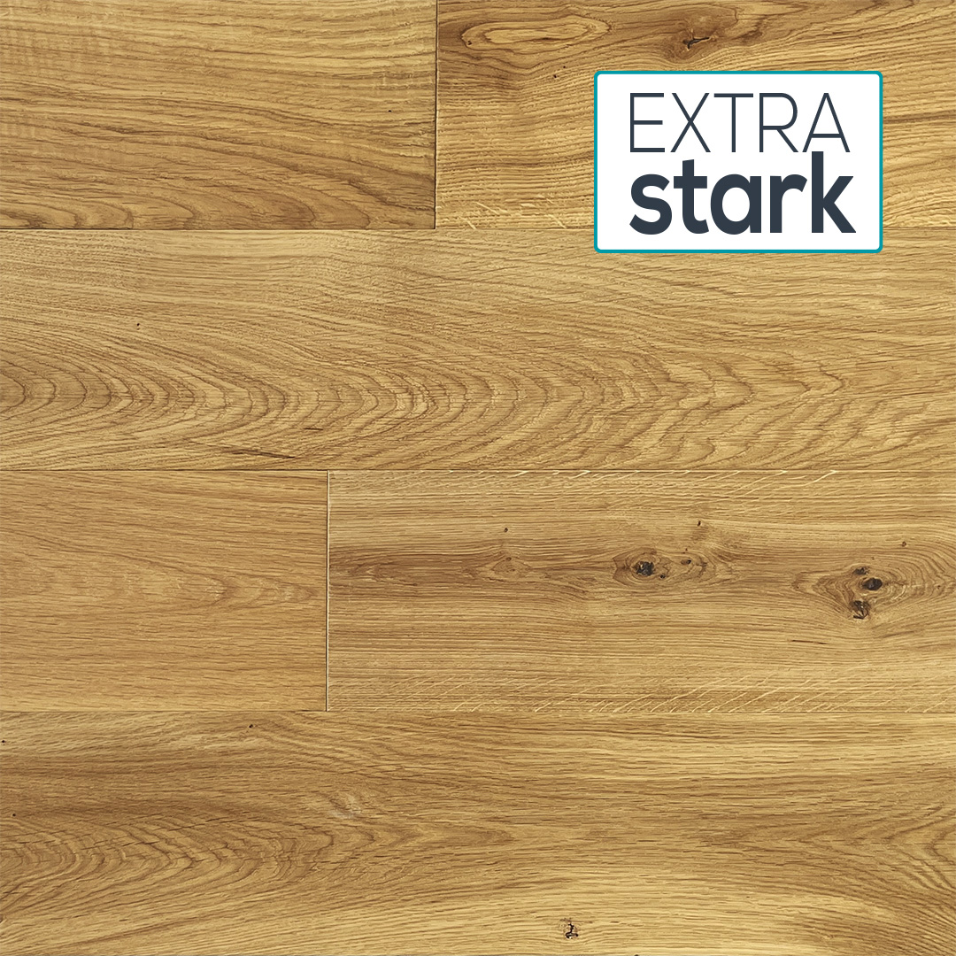 Fertigparkett Landhausdiele aus Eiche • 22 / 6 x 190 x 2130 inkl. Kurzlängen • Nut & Feder Verbindung • Sortierung: rustic • Oberfläche: handgehobelt, extrem matt farblos geölt